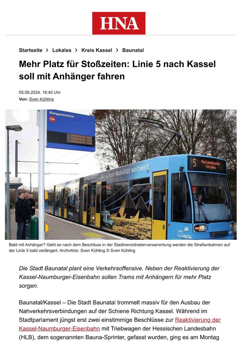 Eine weitere Ausweitung von Straßenbahnfahrten mit Anhänger in den Stoßzeiten erhöhen diesen Lärmemissionswert um ein vielfaches, was auch nachweislich messbar ist auf der Linie 1 zwischen KS-Wilhelmshöhe - Holländische Str.
